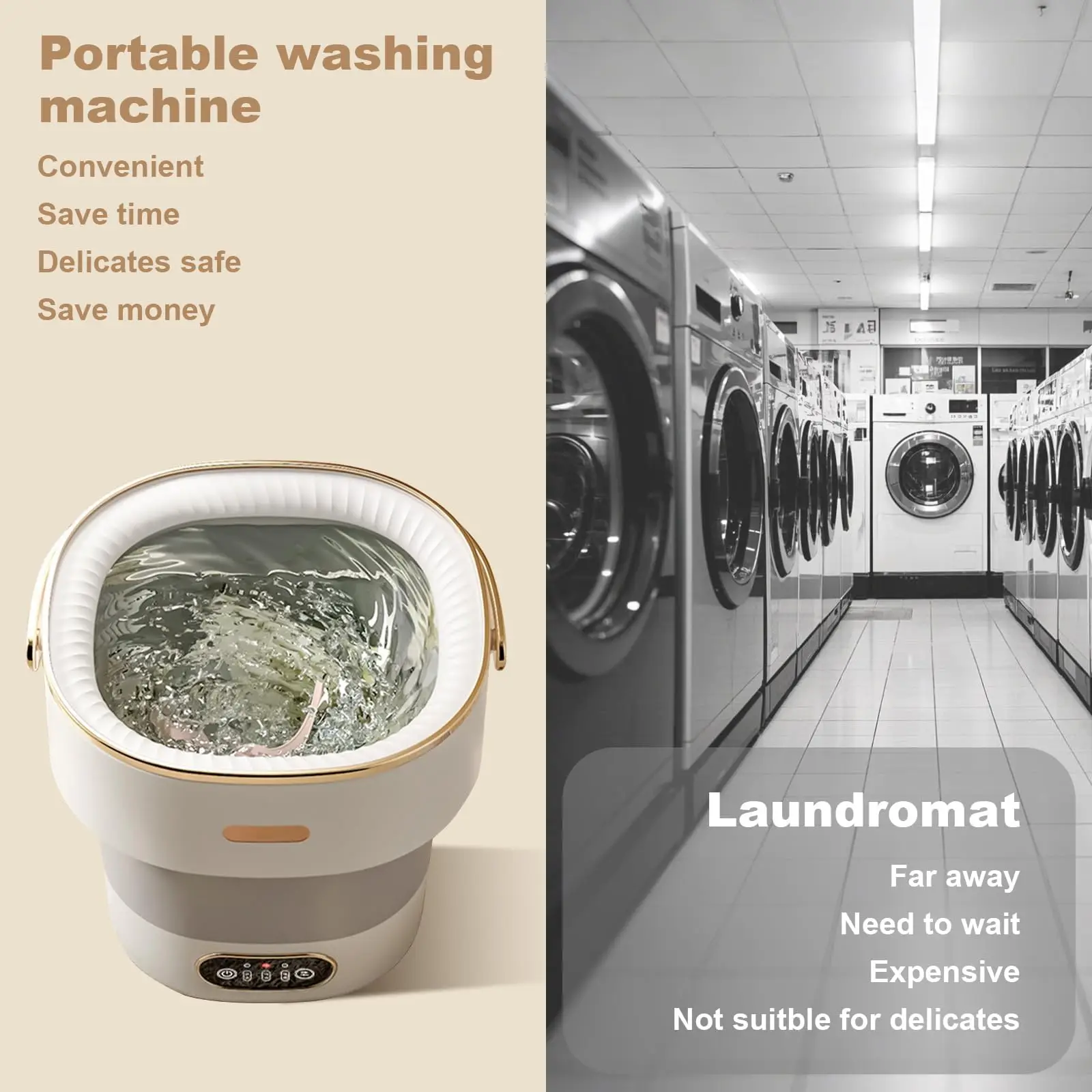 1. 🧳【Ultra-Light & Multi-Scene Use】Only 5 lbs! Comes with a spin basket, drain hose & blue light function. Compact for easy storage, perfect for apartments, dorms, RVs, travel and camping