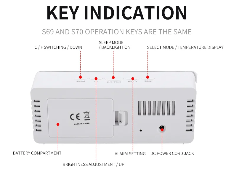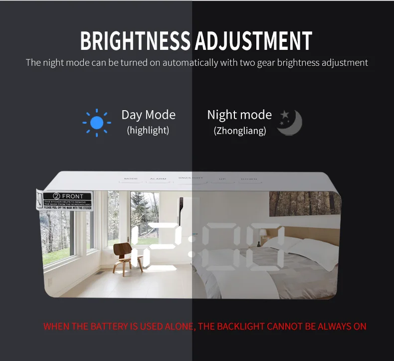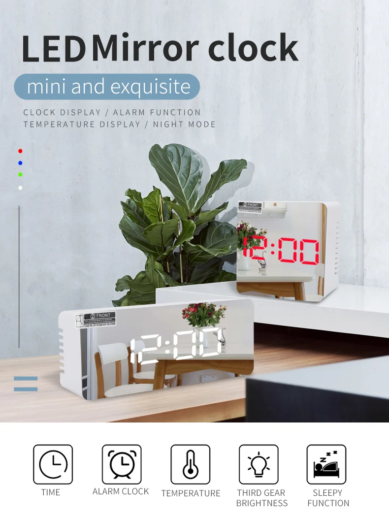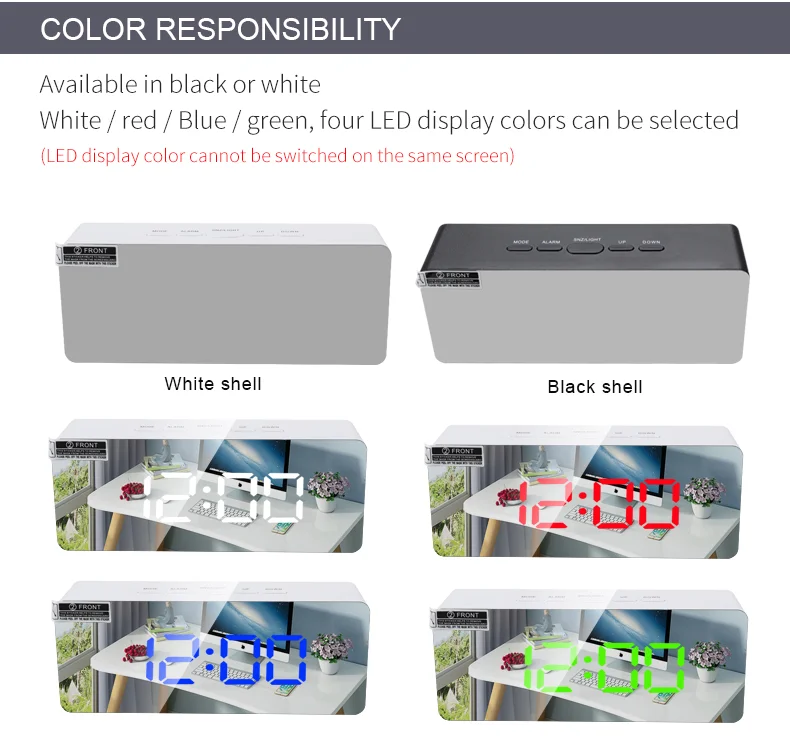 Function: Clock,snooze,alarm,night mode,temperature,adjustable brightness