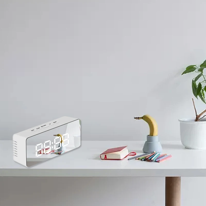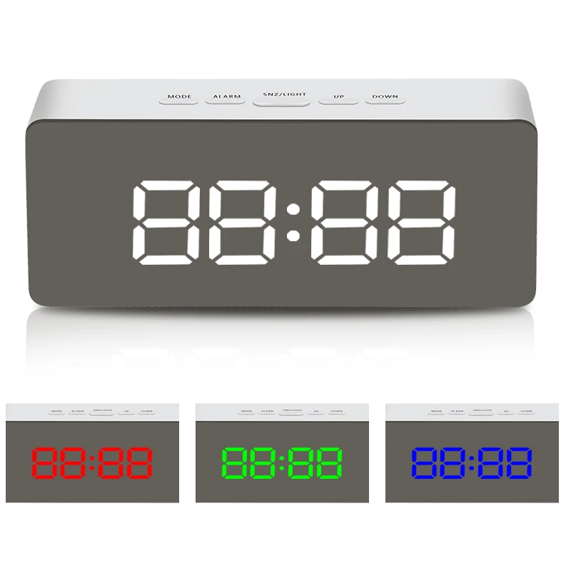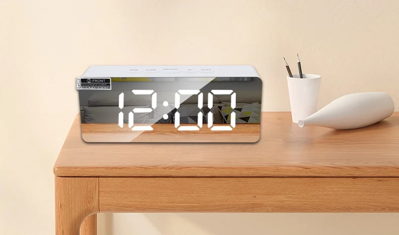 Modern USB digital alarm clock with mirror design battery operated non ticking bedside alarm clock for bedroom and desk